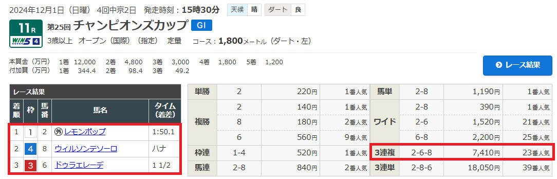 馬券代で18,000円かかっているのでプラスになったのは900円だけでした…(笑)