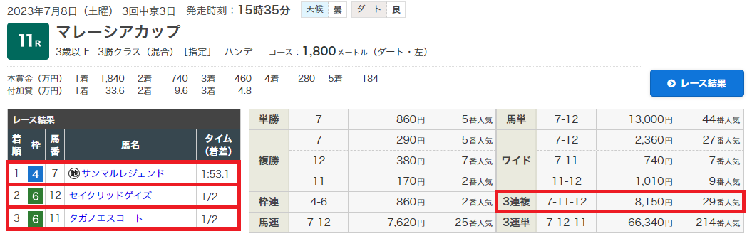 7月9日・函館11レース 五稜郭ステークス 3歳以上3勝クラス 芝1800m