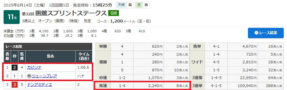 函館競馬場11R函館スプリントS(G3)の予想になります。