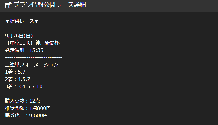 これこそ押さえ不要の馬券術ではないでしょうか。 1万円を切る馬券代で神戸新聞杯的中。 頭数10頭と、シャフリヤール主軸に点数絞って負けた人多いと思います、自分の友達もそうでした。 ですがアルケミストの予想は下位評価、10頭立てレースでも3連単8万馬券的中で払戻は71万4640円獲得でした。 満足です、因みに土日の1点予想も両日的中でした。悪しからず。