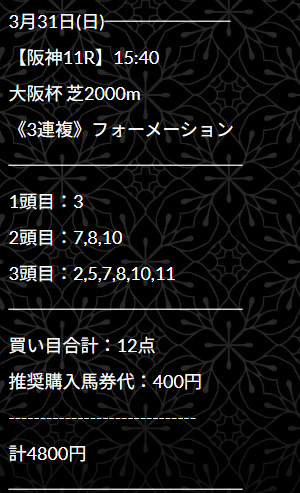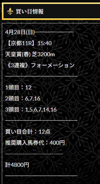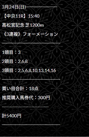 約束された万馬券の買い目が届く!