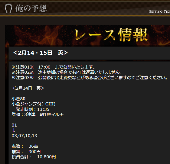そんな障害戦【小倉ジャンプステークス】でとんでもない馬券を当ててもらいました