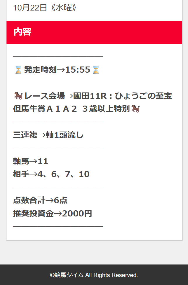 僕は無料予想やってました、天秋で10万400円的中ありがたくちょうだいしました!
