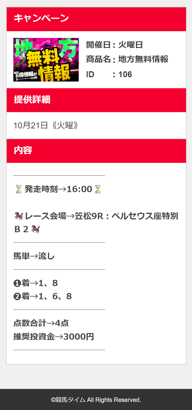 初見利用のファンタジーステークス無料予想10万越え払い戻しの10万4400円的中貰えました♪ 有料情報試す価値ありそうです☆